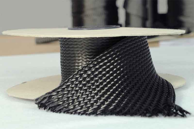 This carbon fibre braid is sold by the linear metre (with the braid at its natural 45° orientation) in a continuous length. For example; if you purchase a quantity of ‘5’ you will receive a continuous length of braid 5m long. There is no minimum order quantity but several volume discounts are available for larger quantities.